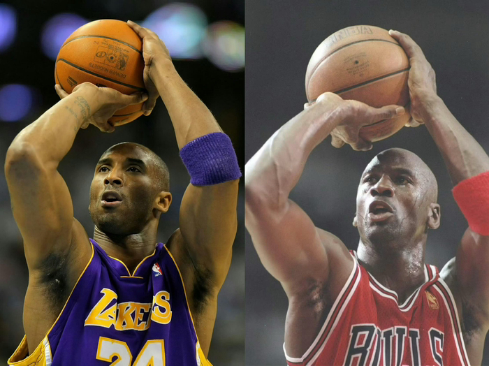 我一直觉得,晚期的科比,虽说运动能力下降,但在球场智慧上,逐渐向乔丹看齐——技巧简洁,绝不繁复;球场的位置感绝佳;无死角的投射,无差别的单打,等等。